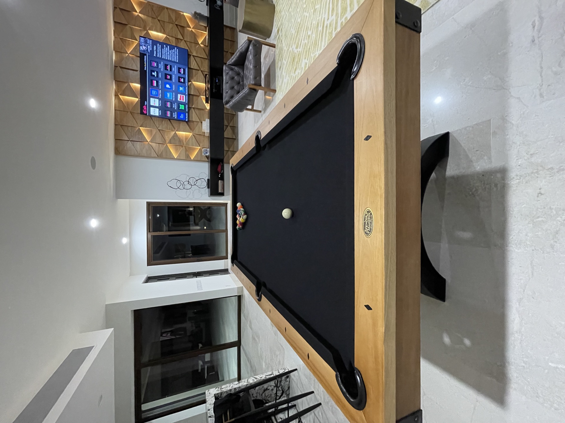 A dedicated entertainment room with lounge seating and billiards anchors the ground floor, while the private rooftop terrace — with panoramic Pacific views and fire pit — is where the day gives way to the evening. Every gathering has its place.